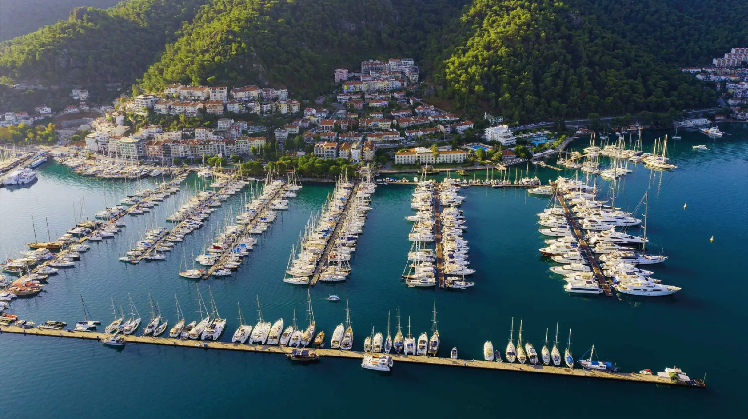 Ece Marina is located in the heart of Fethiye Bay, surrounded by calm turquoise waters, scenic mountain views, and a vibrant coastal atmosphere. It is one of the most established marinas in the region, offering modern infrastructure, full technical services, and convenient berthing for both visiting and long-stay yachts. Its central location provides direct access to the Twelve Islands route and the wider Lycian coastline, making it an ideal starting point for luxury sailing experiences in the Mediterranean.